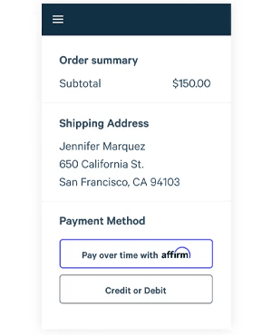 Select Affirm at checkout, then enter a few pieces of info for a real-time decision.
