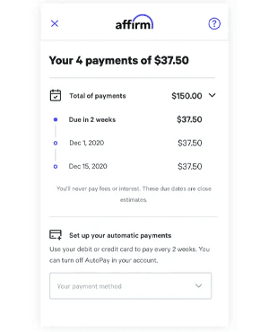 With Affirm, you always know exactly what you'll owe and when you'll be done paying.